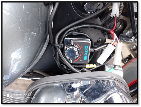 Piuhojen päässä on liittimet suoraan akulle ja piuhaa on riittävästi. Toki isot pojat internetissä neuvoivat ettei kannata laittaa suoraan akkuun koska siinä on riski että jäävät päälle ja sitten onkin akku tyhjä. Koska omaan hankalan luonteenlaadun, kärsimättömän mielen ja ymmärrän sähköistä yhtä paljon kuin sika shakista, päätän vetää, näin aluksi, piuhat akkuun; helppoa ja kivaa.