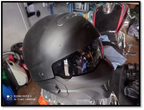 – Leukasuoja irtoaa helposti jopa silloin kun kypärä on päässä, sivuilta molemmin puolin löytyy napit joita painamalla leukasuoja melkeinpä putoaa irti. Laatikossa tuli mukana klipsit joilla saa leukasuojan kiinnityksen kolot piiloon.