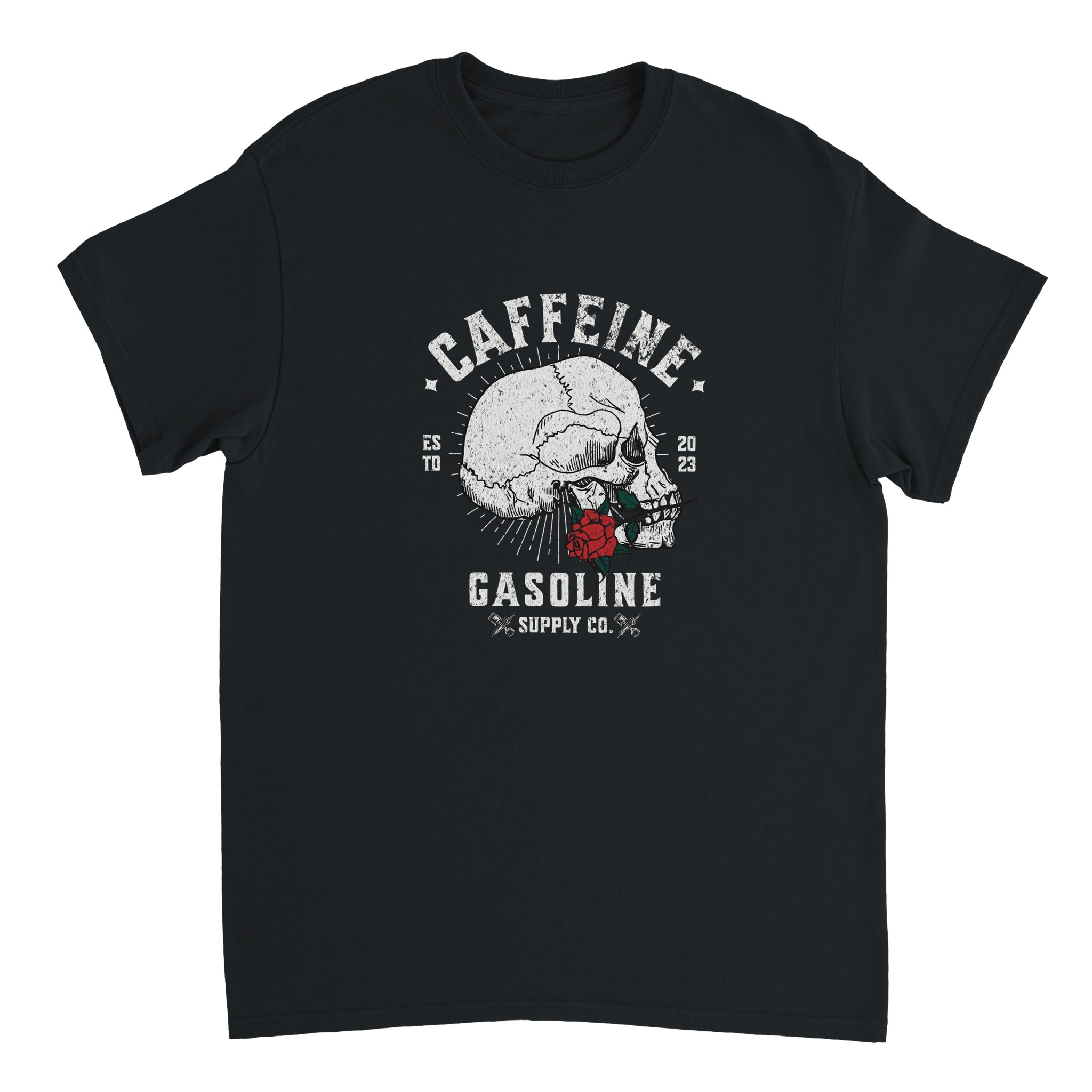 Caffeine Gasoline Heavyweight Unisex Crewneck T-paita, musta