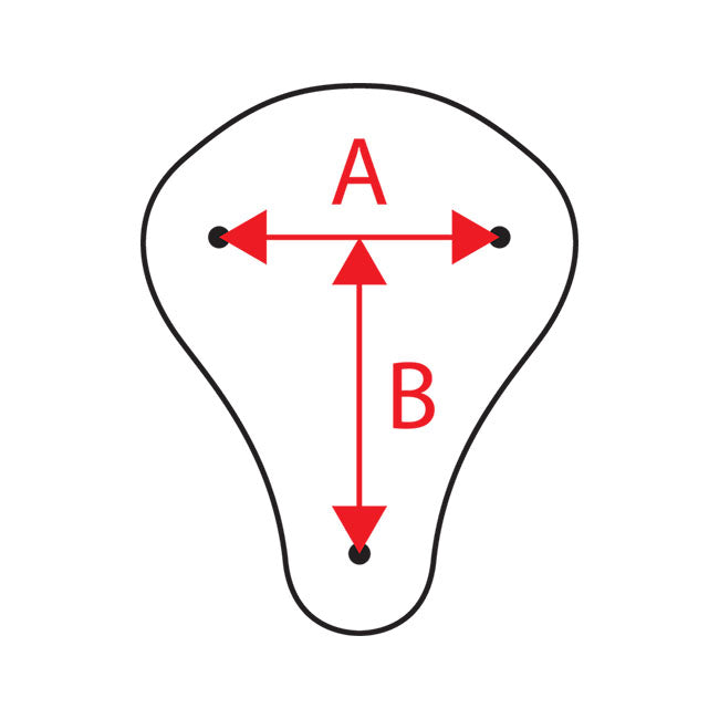 Black vinyl with a Diamond stitch pattern upholstery. Period correct for a timeless low budget bobber or Brat Style bike, all without breaking the bank. Approx. dimensions: 12.5″ (31.8cm) long x 10″ (25.4cm) wide. Note: See bolt placement drawing. A=18cm, B=18cm.