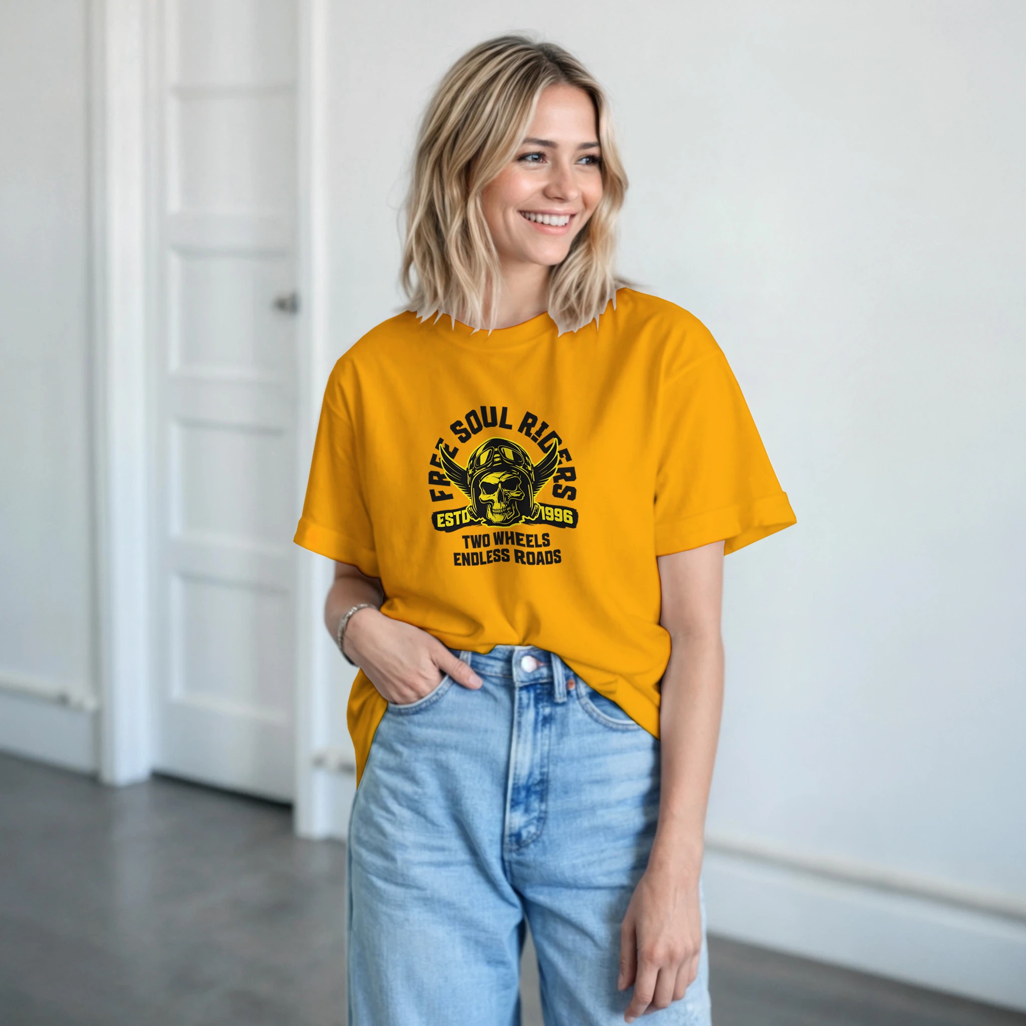 Free Soul Riders Heavyweight Unisex Crewneck T-paita, keltainen