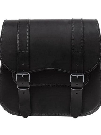 Ledrie, full leather swing arm bag left, 9 liter. Black
