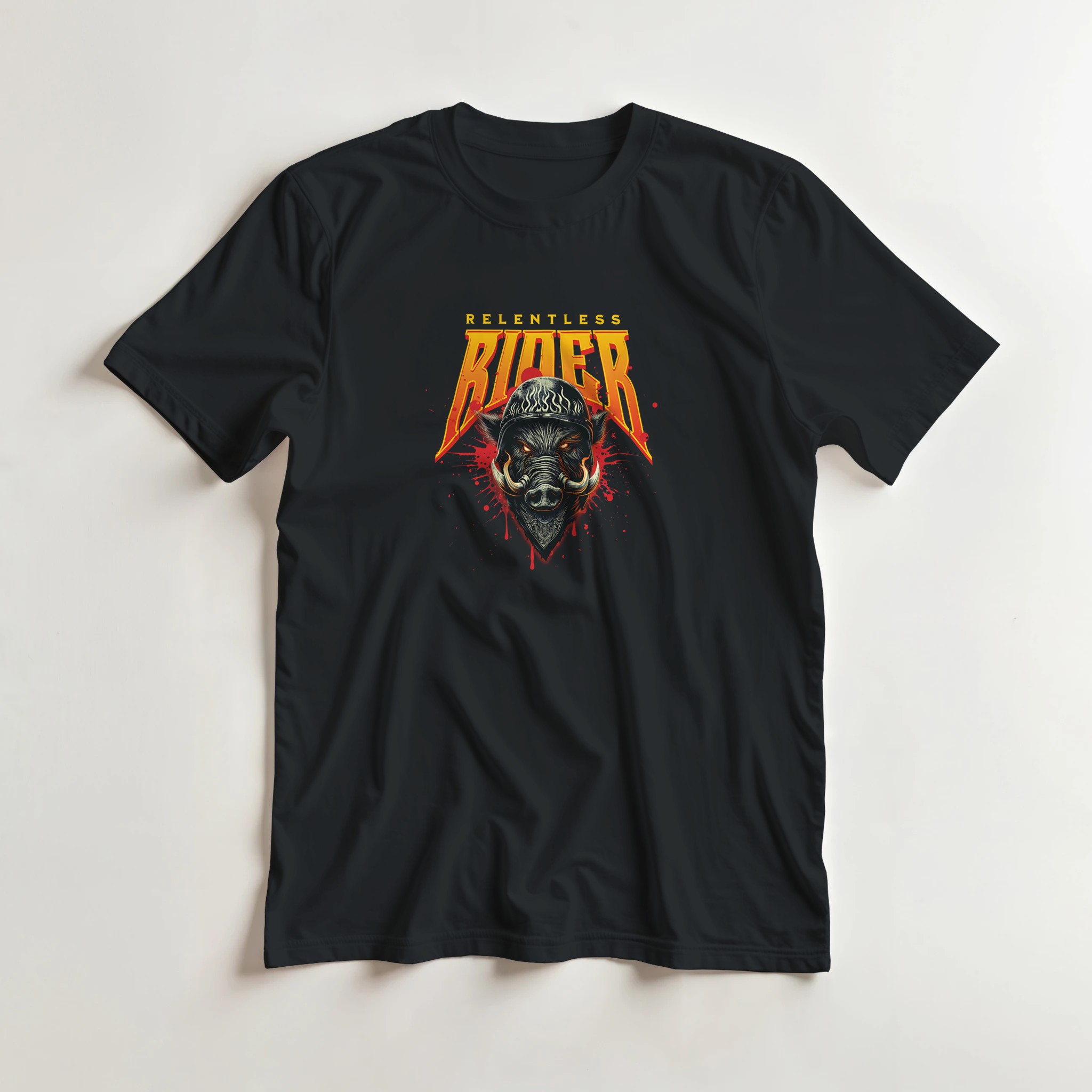 Relentless Rider Heavyweight Unisex Crewneck T-paita, musta