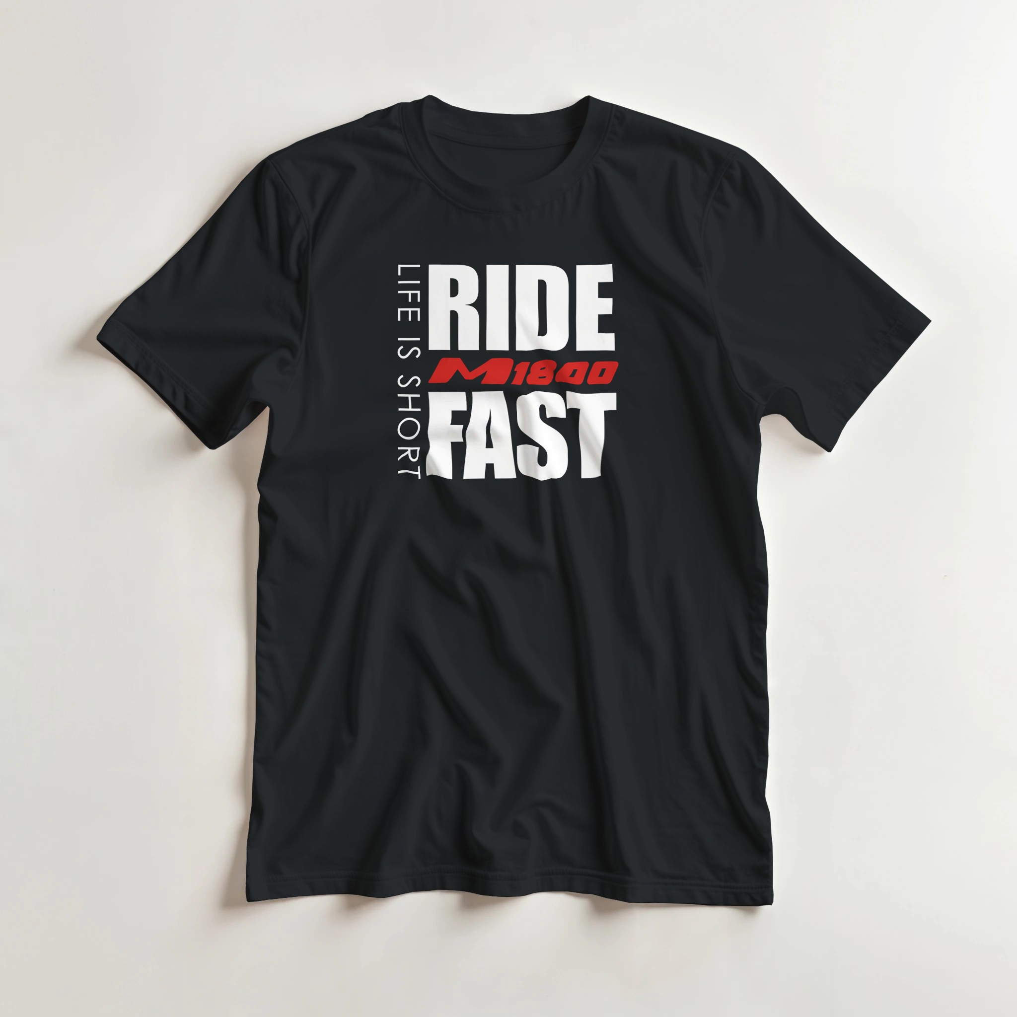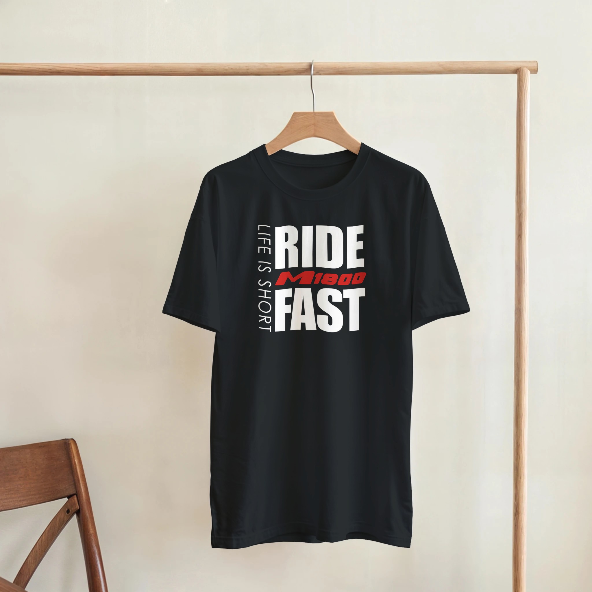 Ride Fast M1800 Heavyweight Unisex Crewneck T-paita, musta