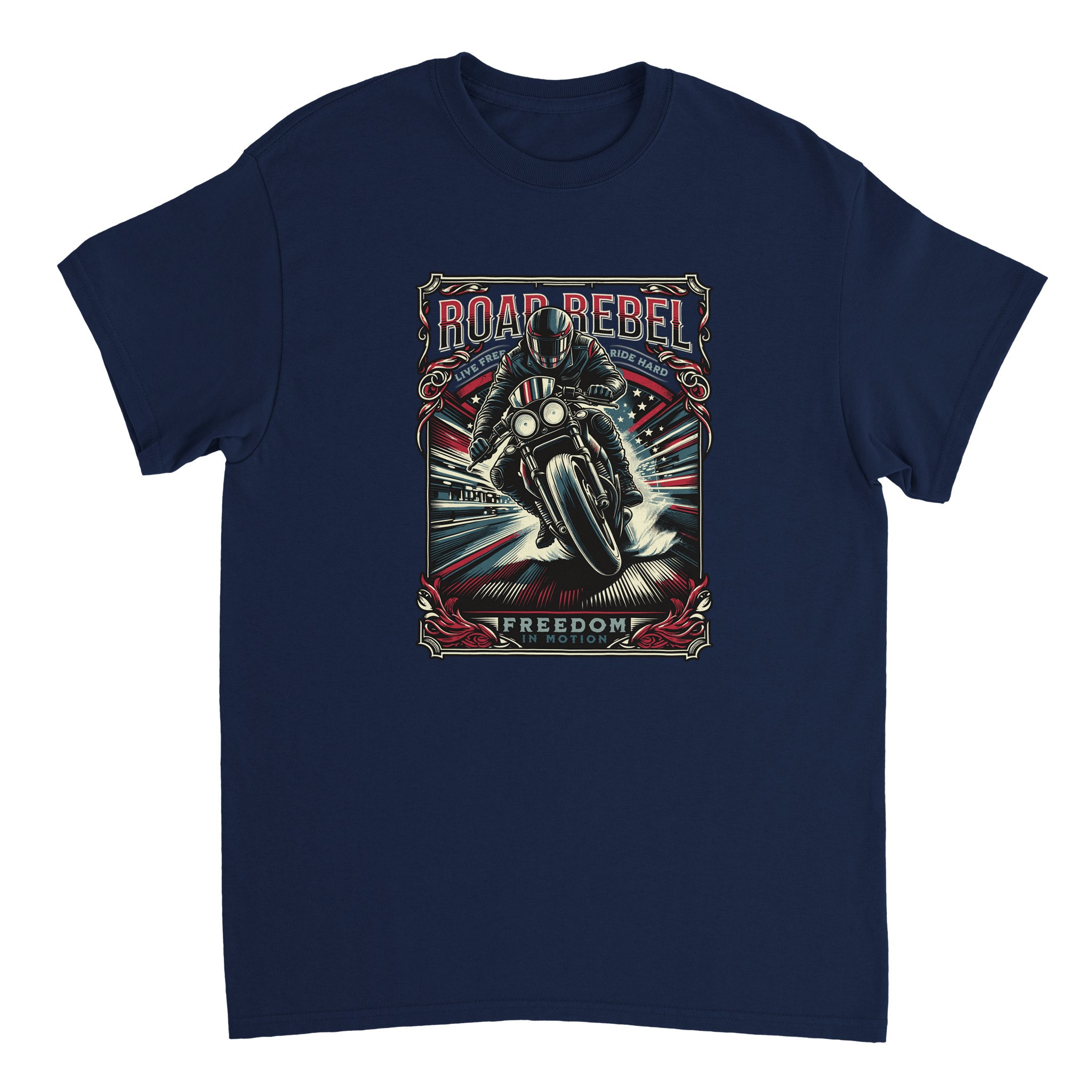 Road Rebel Heavyweight Unisex Crewneck T-paita, navy